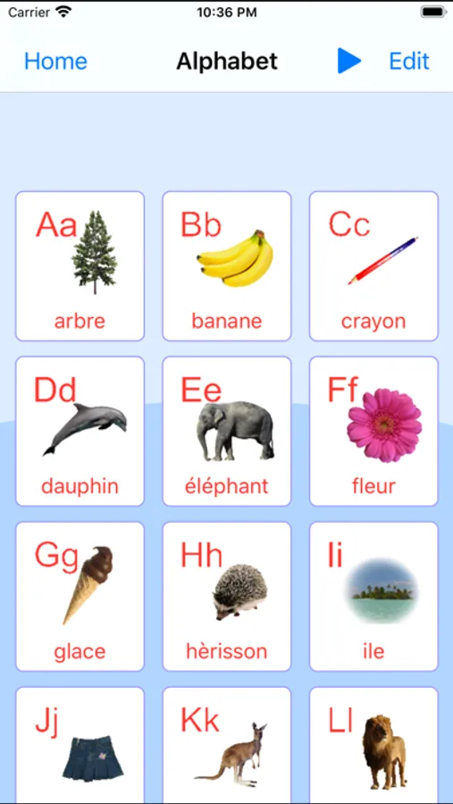 You can also personalize any card, change an inscription, and record your own voice. To do this, press “Change” button on the cards list screen, then press the blue “Edit” button which will pop up in the upper right corner of each card.