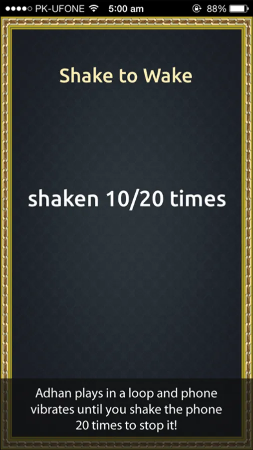 2. Shake to wake: if you choose this option you will have to shake your phone 20 times before the adhan shuts off.