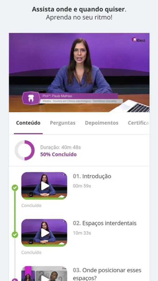 Para você que está cursando Odontologia o iDent possui um conteúdo do ciclo básico ao clínico e ainda te prepara para a vida profissional com aulas de carreira e mercado. Todos os cursos do iDent possuem certificados com horas para serem apresentadas na sua faculdade. Aquela ajuda para passar na prova e sentir mais segurança no atendimento na clínica!