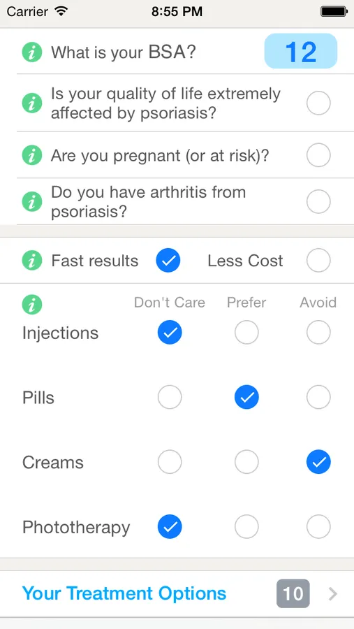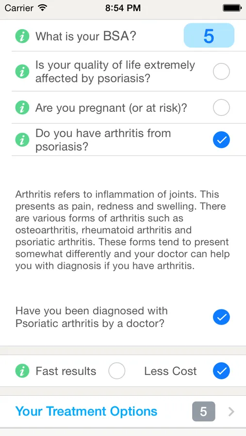 While not intended to replace a consultation with a dermatologist; this tool provides an excellent starting point when trying to decide how to treat your psoriasis. Your doctor can provide more details about your specific circumstances and needs that may your treatment decisions more directly.