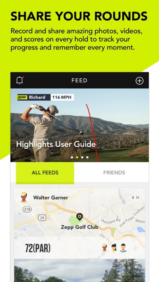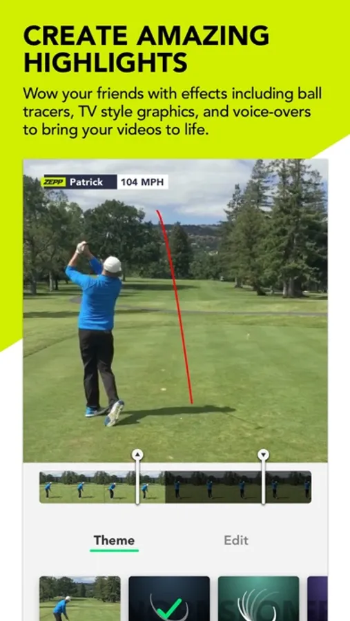 Train smart. Improve fast. Have a blast. Hone your swing on the range with Zepp's premiere, smart training system. Then head to the course to shoot your lowest rounds ever. Use the FREE Zepp Golf app’s innovative video recognition technology to automatically capture and edit your swing videos on the range or the course, so you can see yourself like never before. Create and share amazing highlight videos, with special effects that include ball tracer technology, infographics, and voice-overs that bring your videos to life. When you're back in the club house, post your best rounds and highlights to the Zepp community while you compete to climb the leaderboard. Share your performance data with the Health app and every round and driving range session helps you reach your fitness goals.