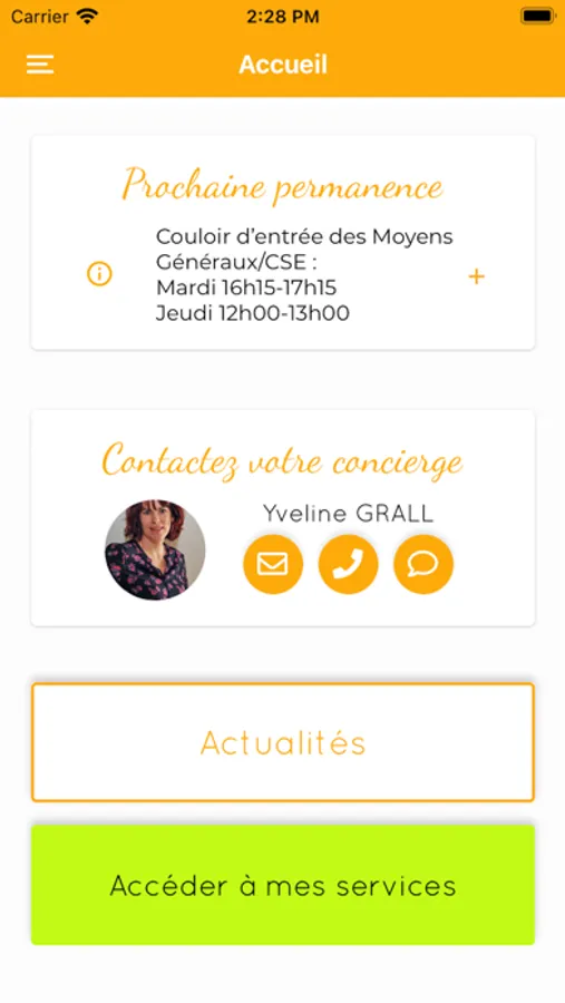 Notre application vous permet de rester en contact avec votre concierge et de connaître le planning des permanences dans votre entreprise.
