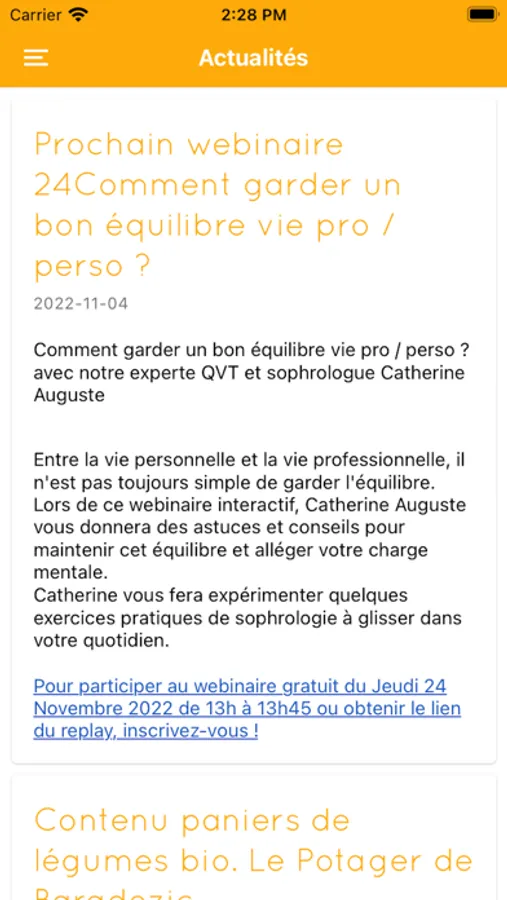Vous pourrez aussi vous connecter automatiquement à la plateforme de commande en ligne et connaître les dernières actualités et promotions de votre conciergerie.