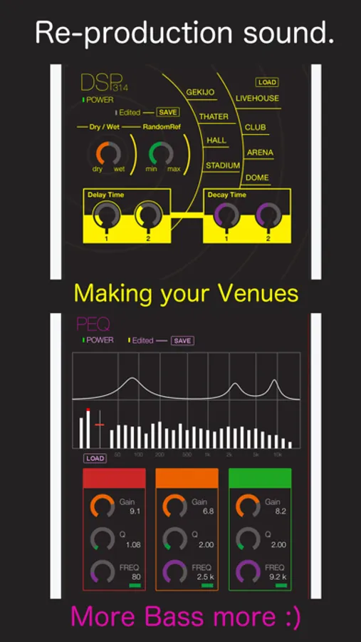 1. 3Band parametric equalizer (EQ) + stereo spectrum analyzer with peak hold + level meter