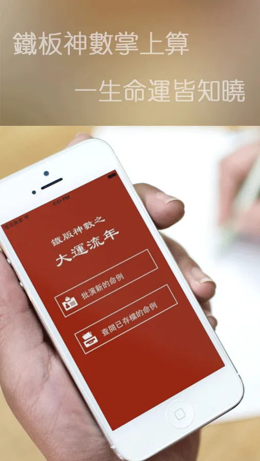 本應用是鐵版神數的姐妹篇,採用馬川老師所傳太華派推演流年之鐵版條文。其特點是融合「邵子神數」、「皇極天書」、「蠢子神數」和「鐵算心易」等中高階數理。