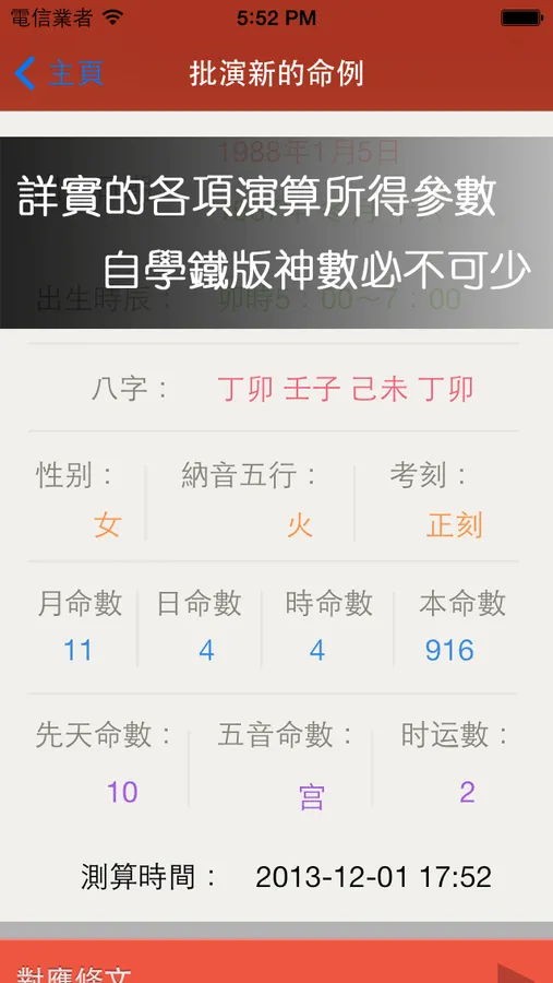 ◆給出詳實的推演結果,如納音、考刻等,入門學習最好的參考資料;