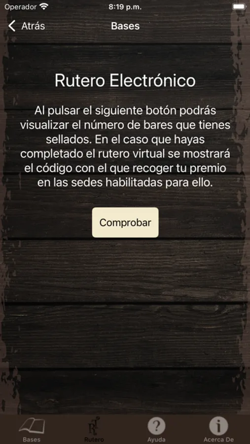 Y por último, el botón “Bases” que describe las normas de participación, además da acceso a la ayuda y al rutero.