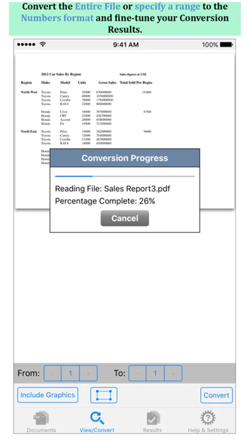 PDF to Numbers also provides detailed options for fine-tuning the conversion process. You can convert the entire PDF file or specify a range of pages to convert to the Numbers format. PDF to Numbers has an integrated PDF viewer allowing you to view the file you want to convert.