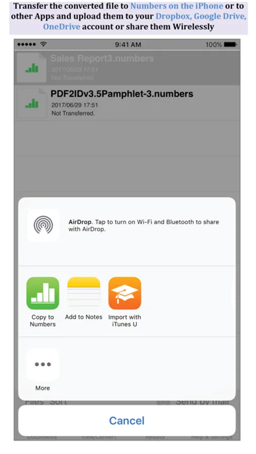 * Transfer your converted files to any other software on the iPhone that can accept Numbers files.