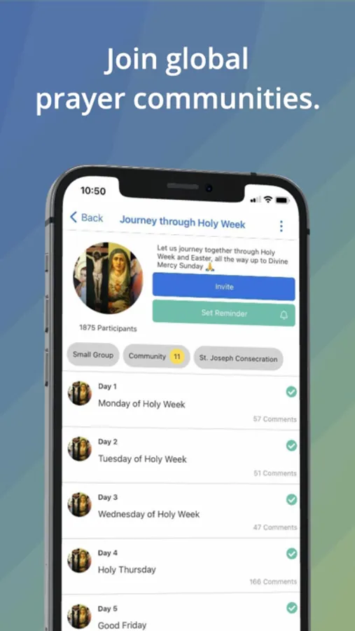 • Join and interact with others in praying a multitude of different prayers together, like novenas and consecrations