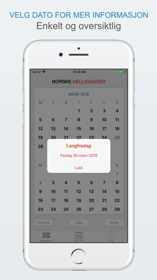 Få full oversikt over de Norske helligdagene, og legg de til i kalenderen på din iPhone/iPad med ett klikk!
