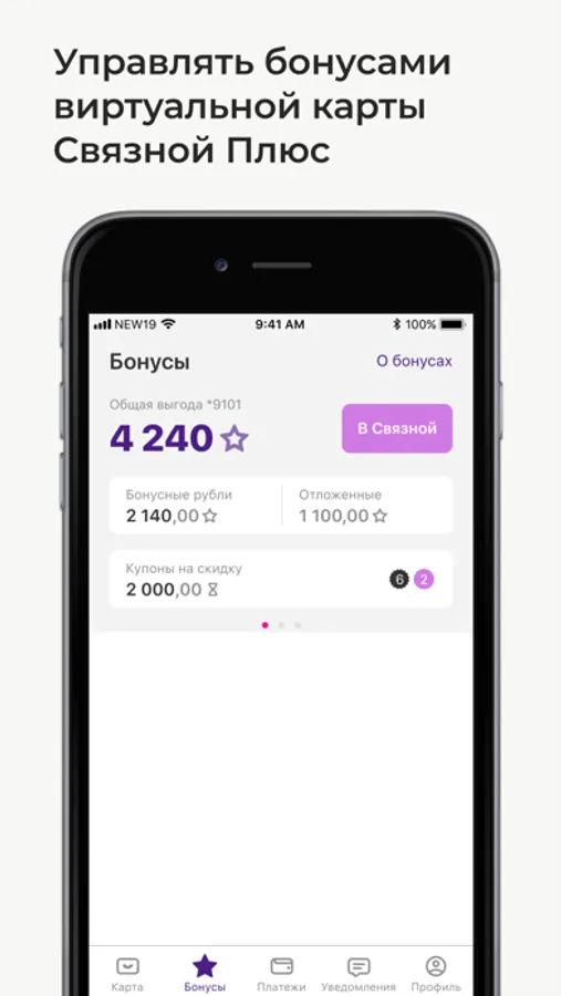 - всегда актуальная информация о денежном и бонусном балансе карты Связной Плюс.