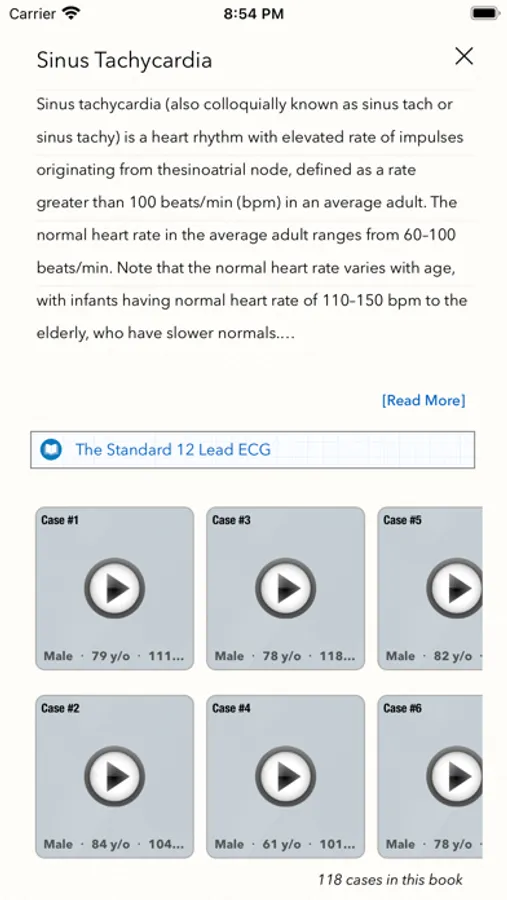 This app allows you to view ECG recordings in real time demonstrating a wide range of different cardiac abnormalities. You can also read concise explanations of how each abnormality manifests itself in ECG findings. The ability to view these ECG recordings as often as desired makes this a valuable tool for mastering the nuances of ECG interpretation.