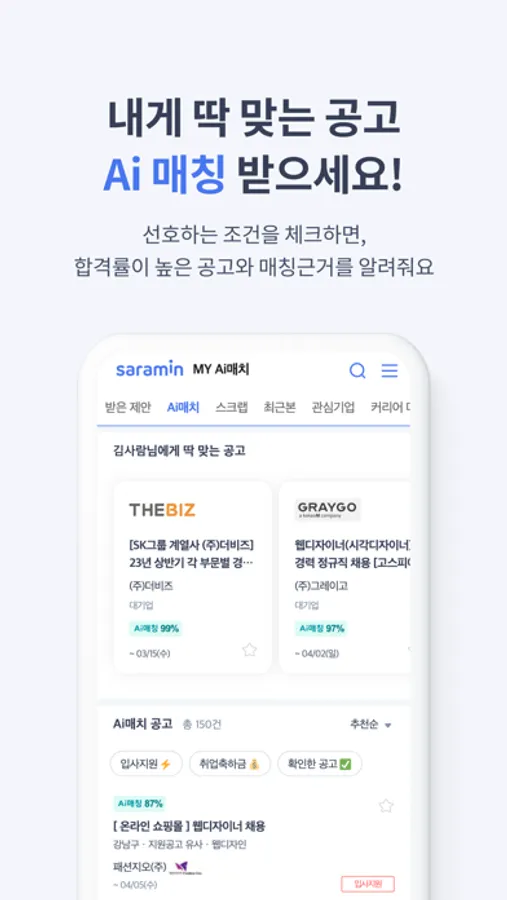 - 직무, 기업, 복지 등 내가 원하는 조건에 맞추어 바로 검색 해보세요.