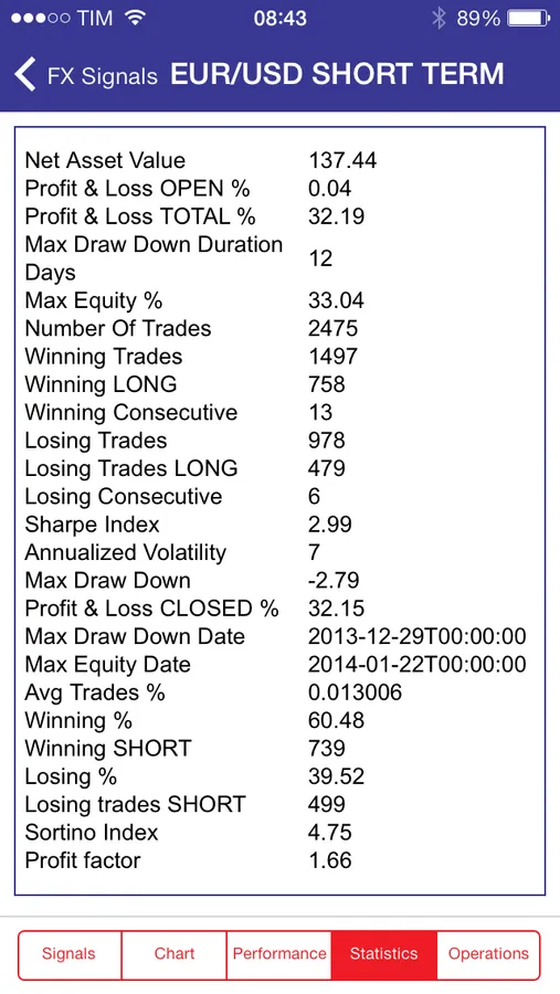 WeakRisk FX allows you to view the results of the historical performance of the past years, the equity line, comprehensive statistics on each task, drawdown and all useful metrics to analyze the outcome of a strategy.