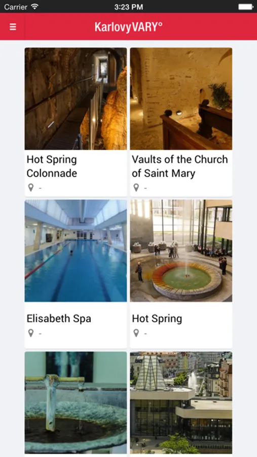 - seznam zajímavých míst (prameny, kolonády, rozhledny, parky)
