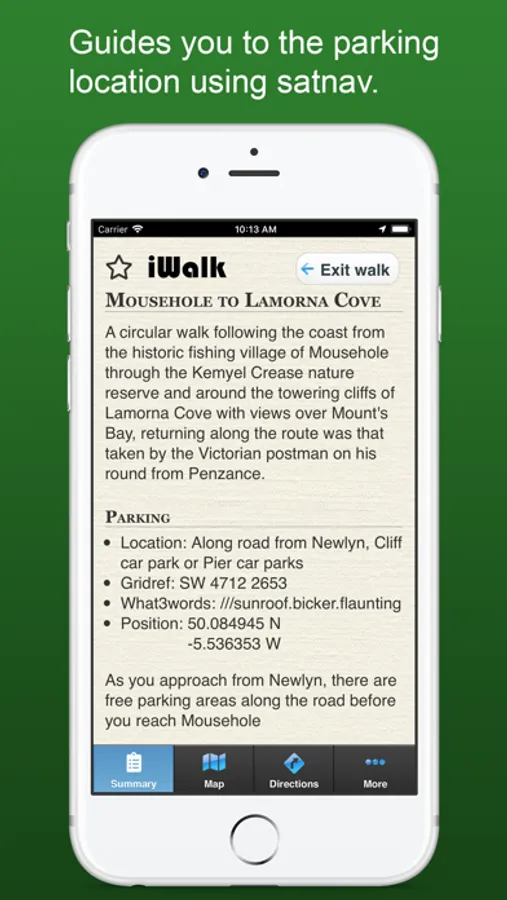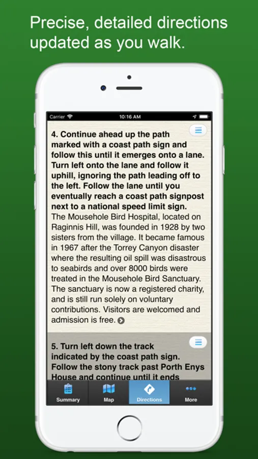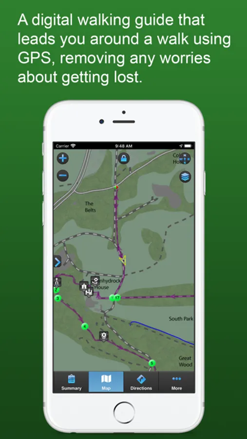 - Includes an accurate map of the walk route and surrounding area, showing where you are on it and which way you are facing.