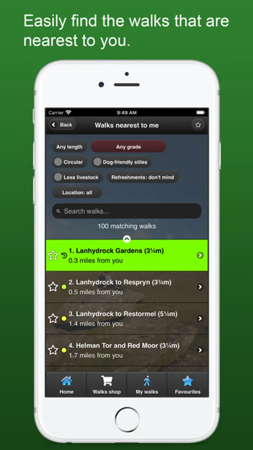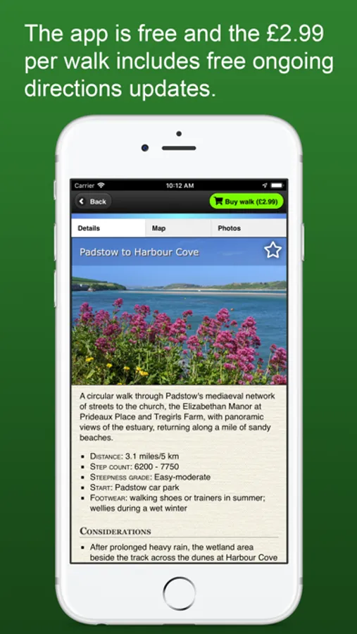 The app is free to download. Walks are purchased from within the app which includes ongoing free updates. The "Lanhydrock Gardens" walk is included with the app for free so you can try it out, and there is a simulation mode so you can do so without driving there.