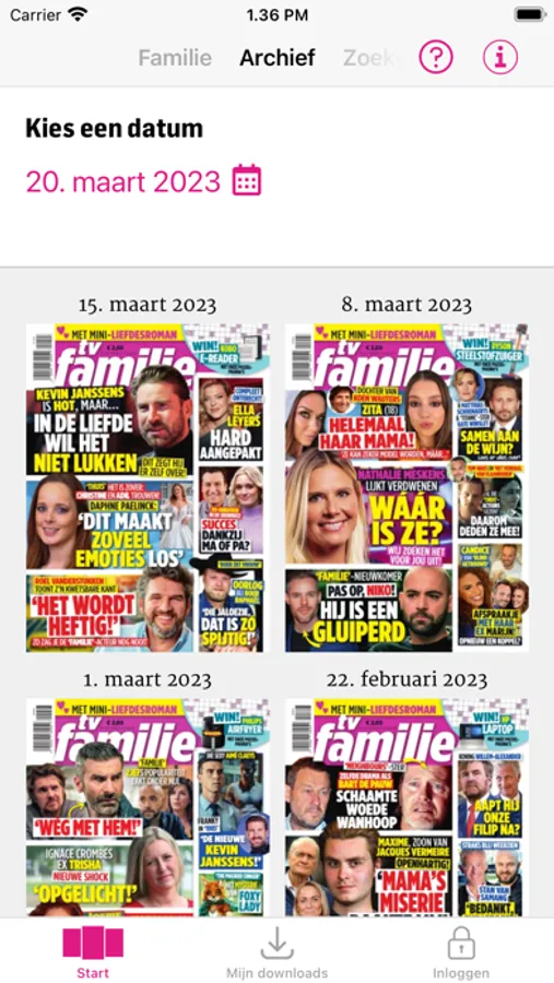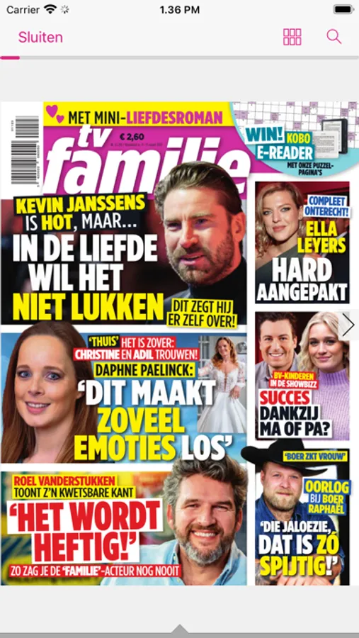 Wie geabonneerd is op TV Familie, leest met deze app het magazine gratis. Weet je niet hoe in te loggen of ben je je logingegevens vergeten, dan kan je terecht bij onze lezersservice: 02 454 29 56 (tijdens de kantooruren).