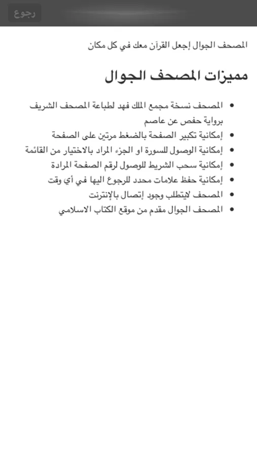 المصحف لايتطلب وجود إتصال بالإنترنت
