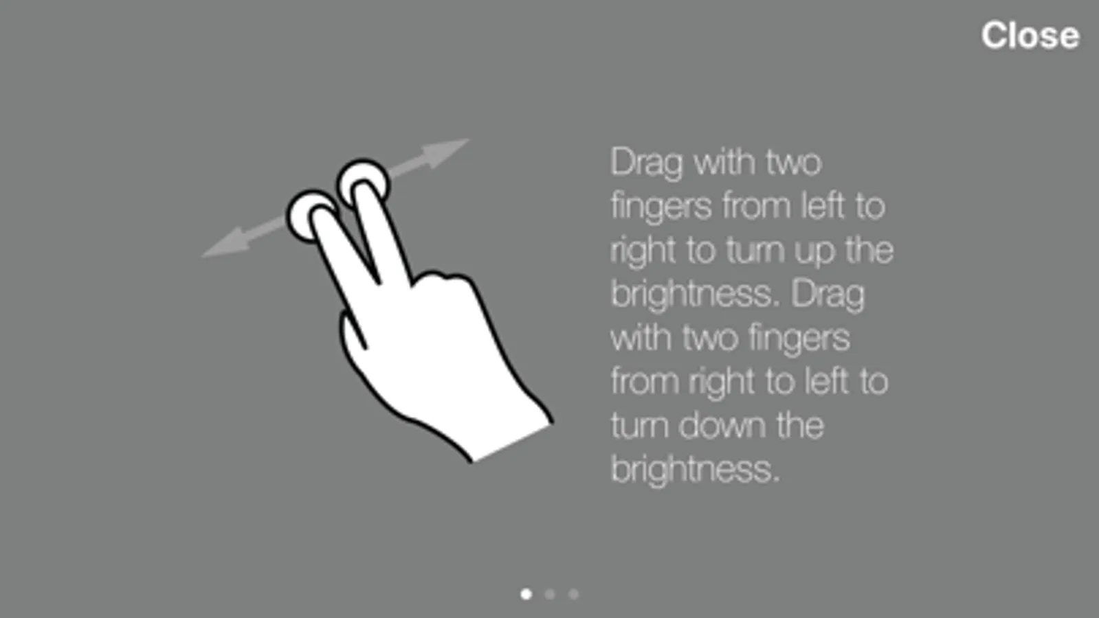 You can change brightness by swiping two fingers across the screen, draw on the screen with one finger and change the color of the background, the stroke color and the width of the stroke by doing a long press on the screen.