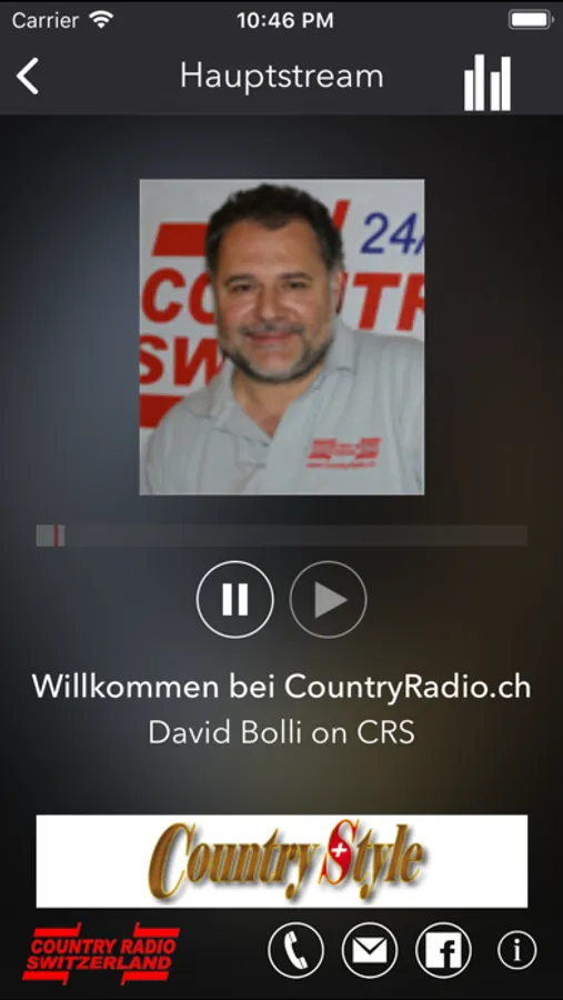 Höre Country Radio Switzerland auch unterwegs. Mit dieser App spielt unsere 64- und 128-kbit-Streams ab und zeigt jeweils das aktuelle Cover sowie Titel und Interpret werden angezeigt.