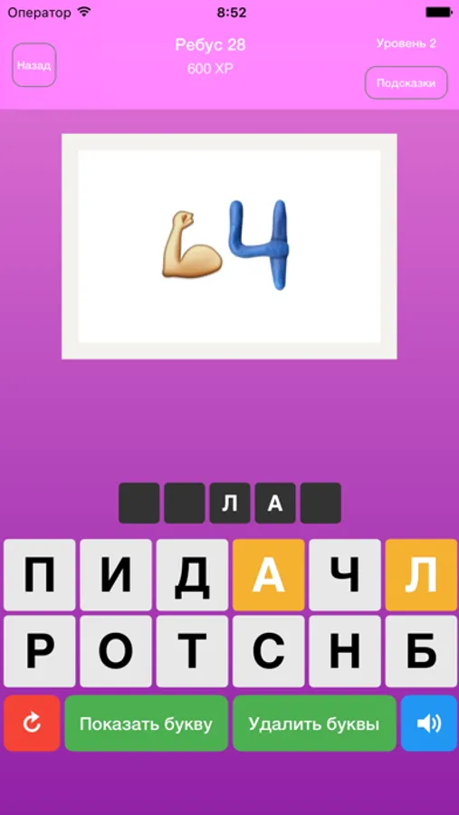 Это игра где вы должны разгадывать ребусы и составлять слова. Сколько ребусов Вы разгадаете? Просто угадай слово! На протяжении всей игры вам будет бесплатно представлено множество различных сборников уровней, каждый из которых содержит множество ребусов. Игра также подойдет детям, обучение в форме игры позволяет развивать абстрактное и логическое мышление - это очень эффективным способ развить логическое мышление в форме игры.
