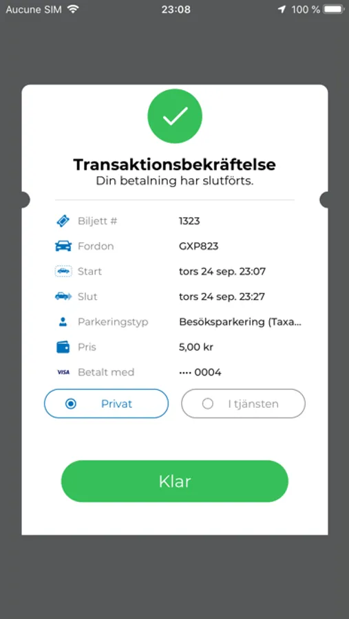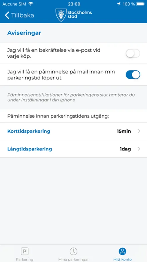 - Receipt of completed parking can be sent to you via email. Receipts can also be downloaded afterwards, in the app or via the web service ""My pages"".
