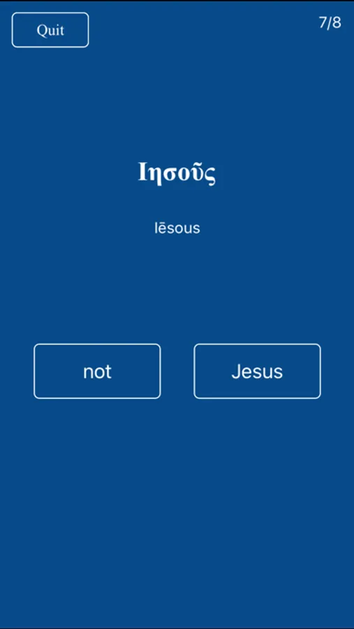 Quickest way to get started on Biblical Greek. Better than flashcards since you can learn at the same time as testing yourself and the app doesn't let you cheat!