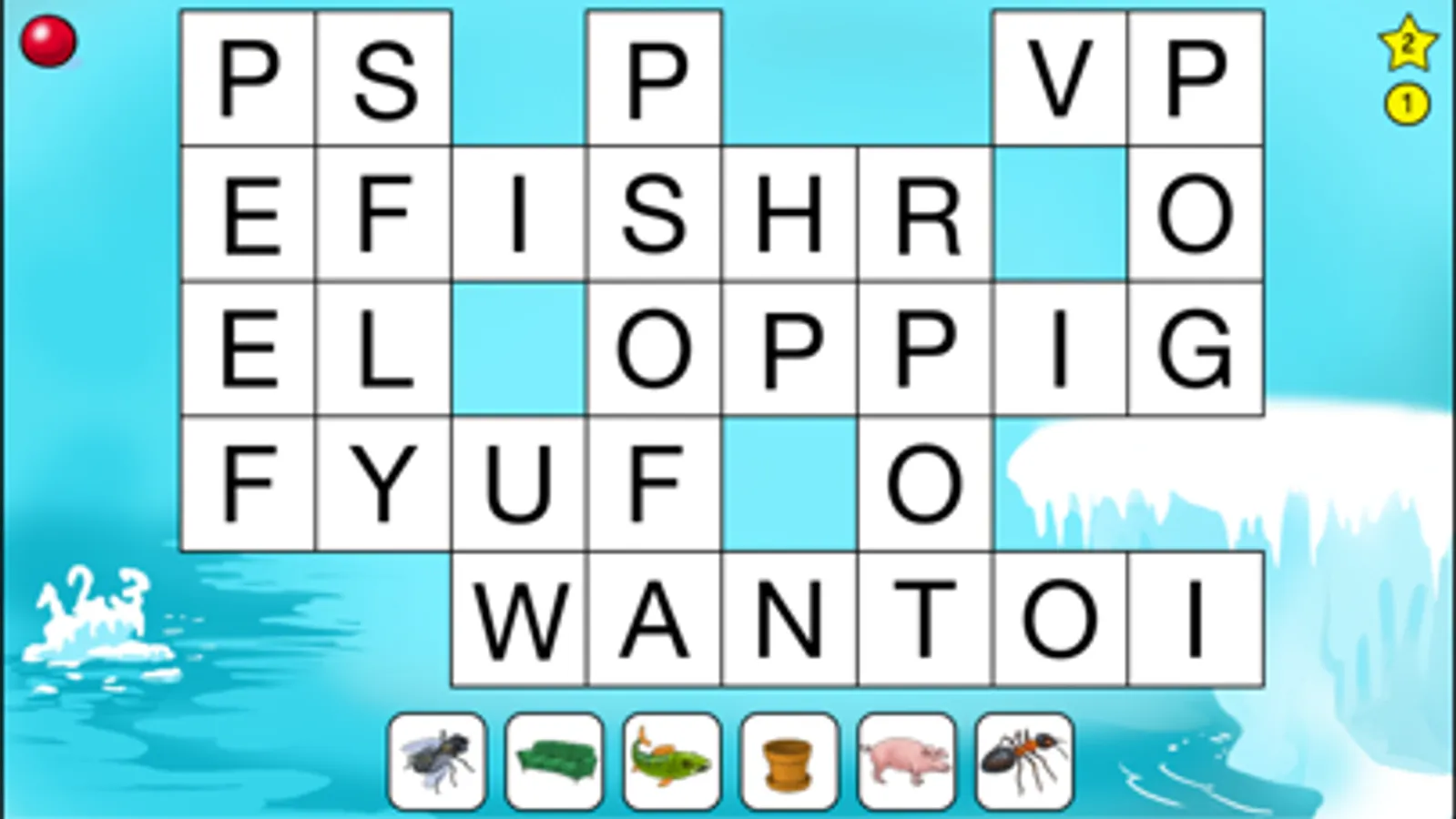 • Hidden words - When you touch the letters that forms the word those will light up and when you are finished an illustration of the word will show.
