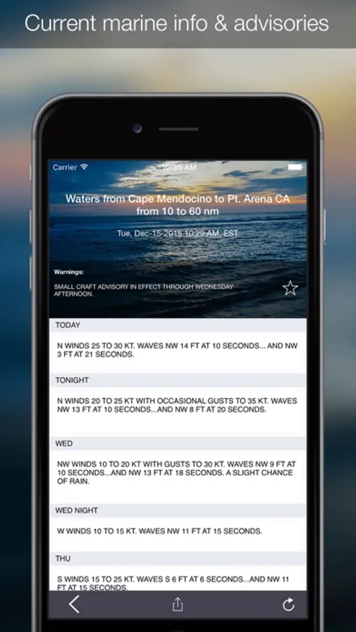 - Save favorite marine forecast areas for quick access