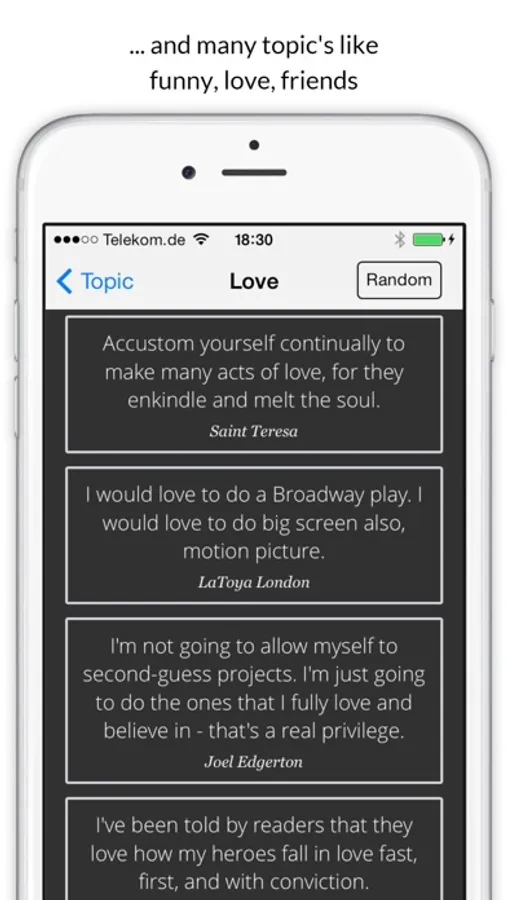 +30.000 Topics such as Love, Bible, Funny, Life, Brainy.