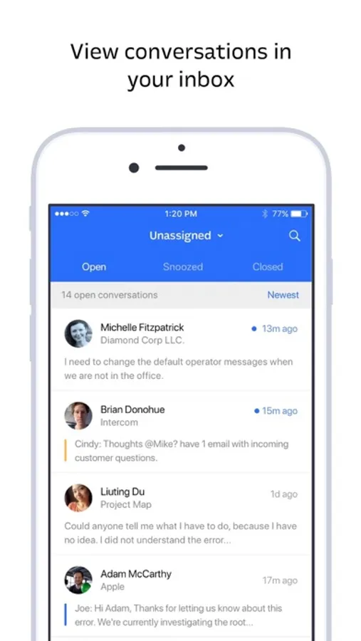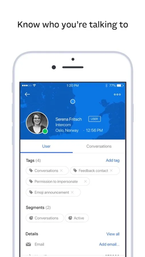 The Intercom Conversations app lets teammates access all their Intercom conversations and customers from their iPhone or iPad.