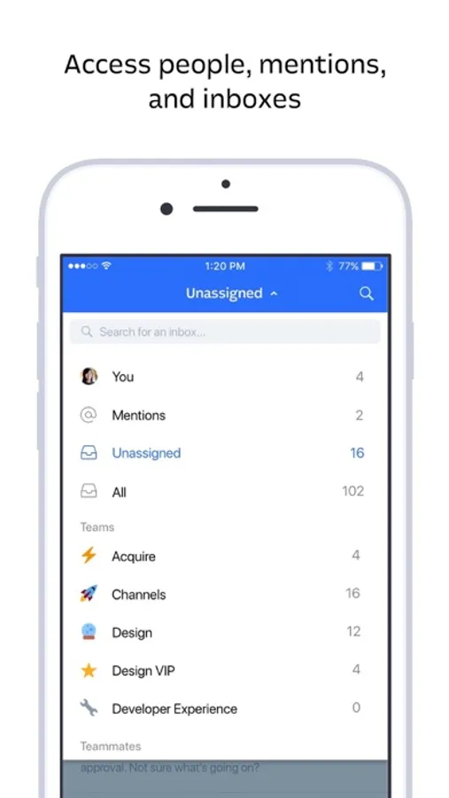 View and assign conversations, see where you’re mentioned, and collaborate with your team using internal notes