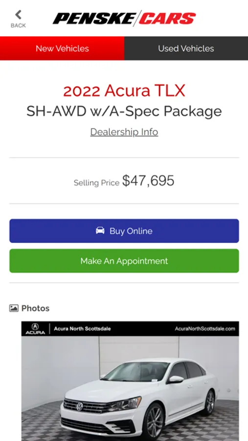 Found the vehicle you like to buy? Use the app to scroll through detailed photos, view individual vehicle options and features, review CARFAX reports, and calculate your monthly payments. Call or email the dealer directly from the app to schedule a test drive.