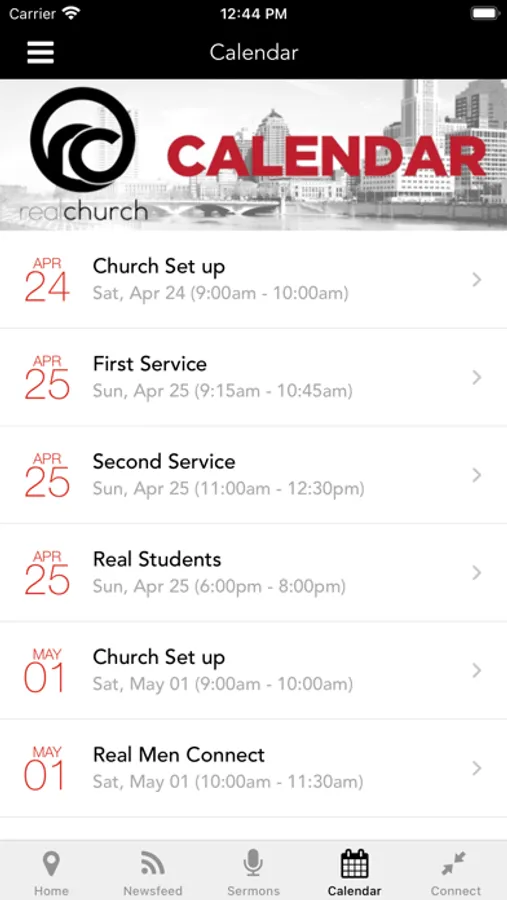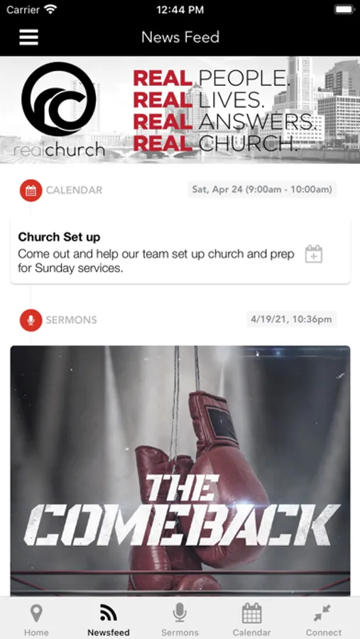- Full social integration makes it simple to stay up to date with Real Church's current events
