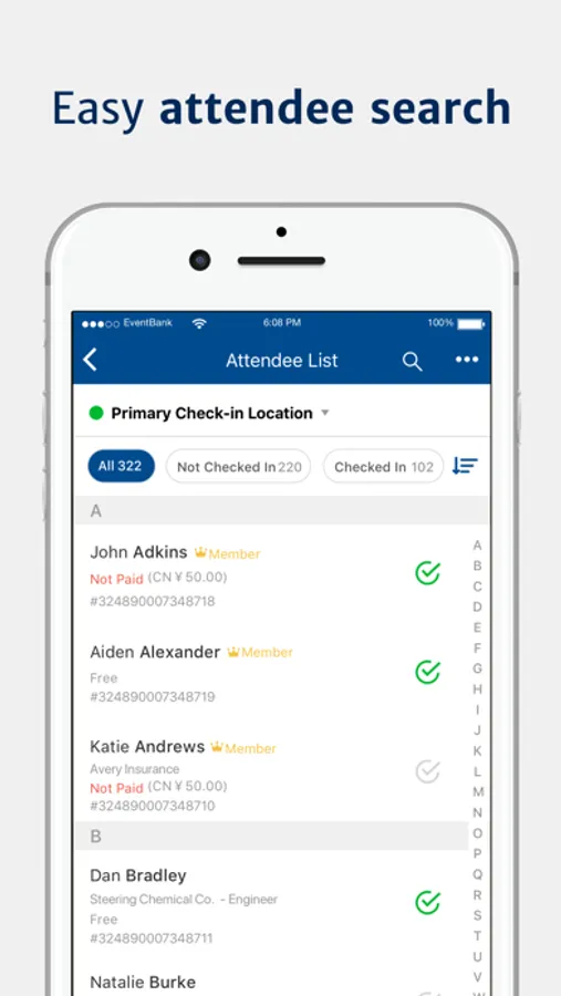 * Check in attendees quickly, update event details, and keep all data synchronized with the cloud platform
