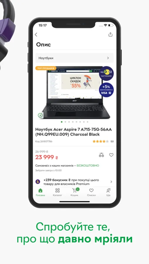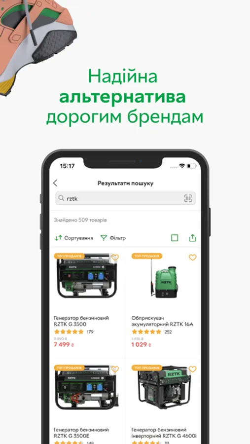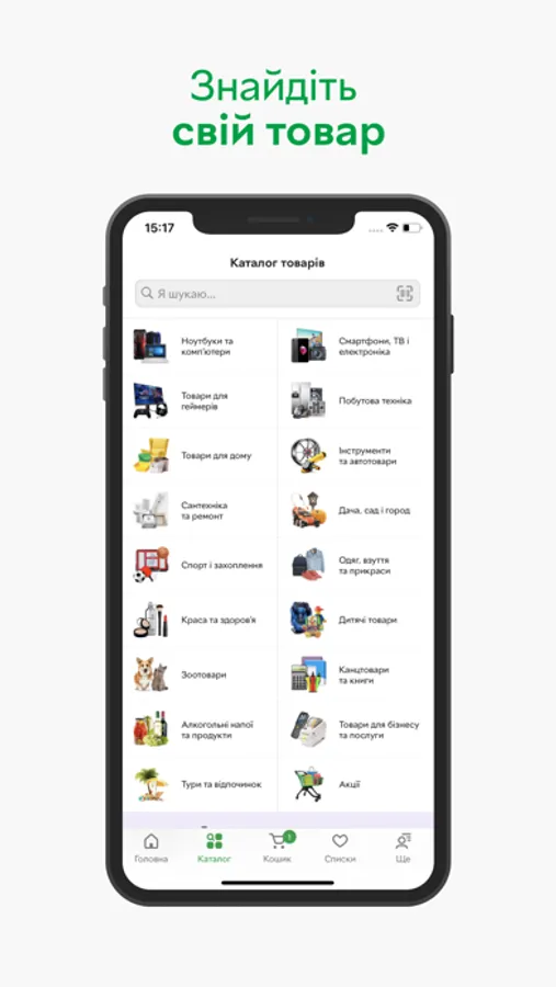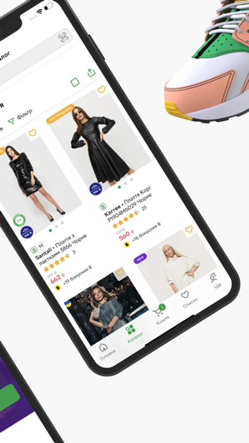 - ділитися вподобаними товарами через соцмережі і месенджери.