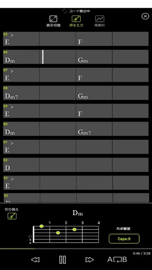 ・コードは音声信号解析で判定するため、実際のコードと異なる結果が表示される場合があります。