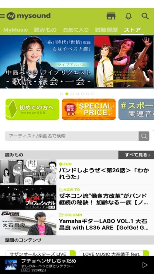 ・mysoundオリジナルの”ちょっとクセになる”音楽記事を読むことができる「読みもの」機能