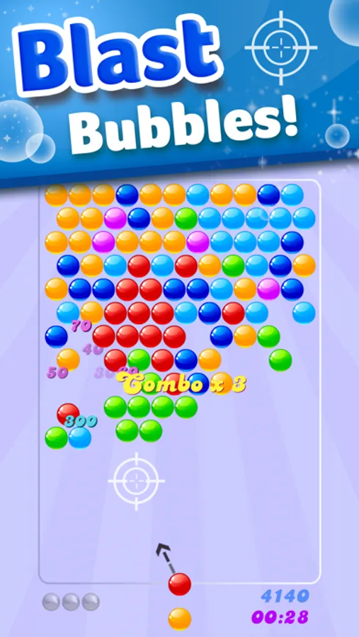- Easy to play! Just collect as many points as you can by popping as many bubbles!