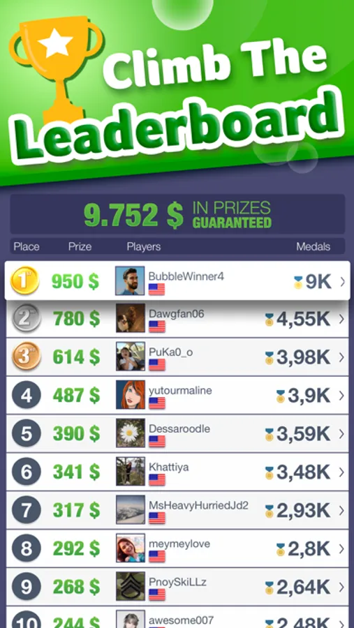 Bubble Shooter! Tournaments is a fun classic bubble game with multiplayer competitions for cash and prizes.