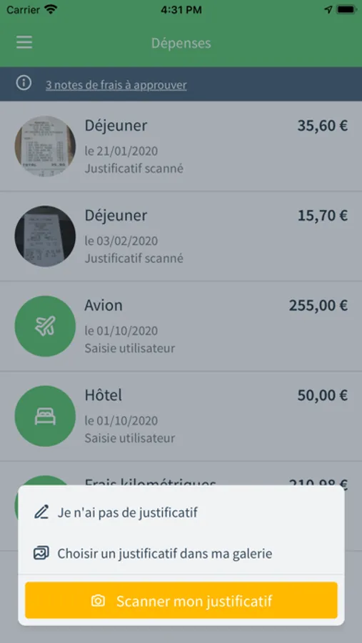 Faites des photos de vos justificatifs, ils seront directement rattachés à vos dépenses