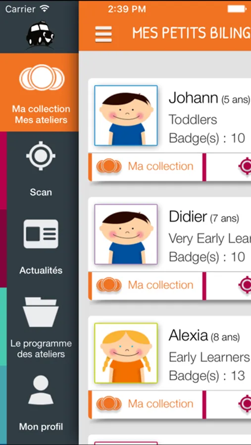 Application mobile destinée aux parents des enfants inscrits à l'un des centres Les Petits Bilingues, désireux de suivre les activités pédagogiques de leurs enfants.