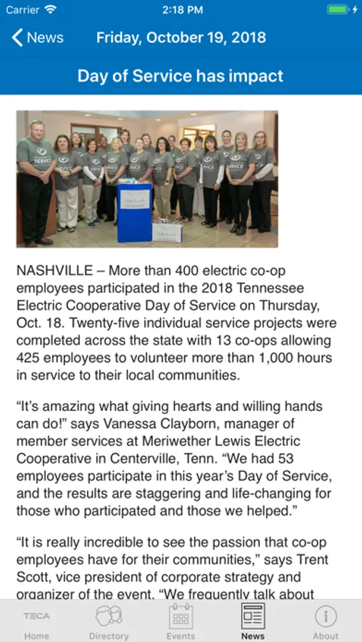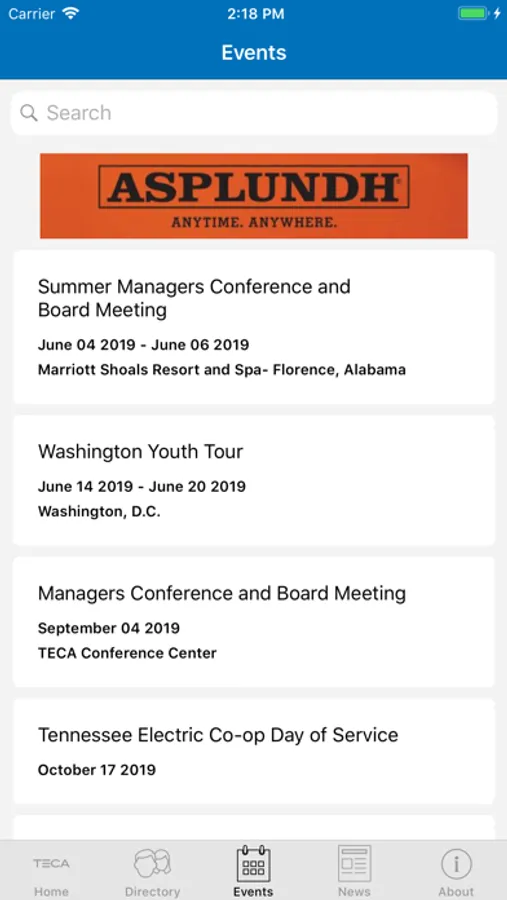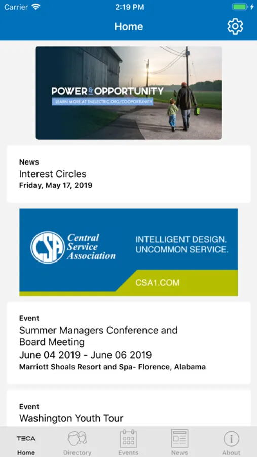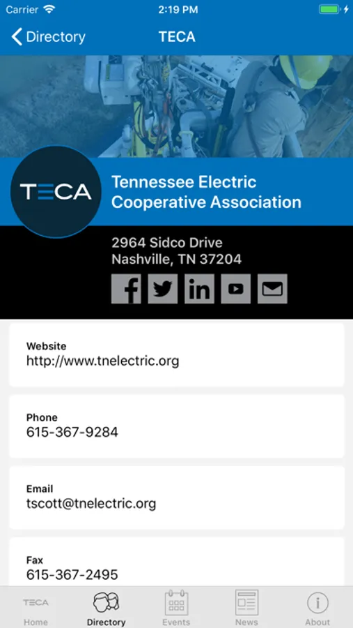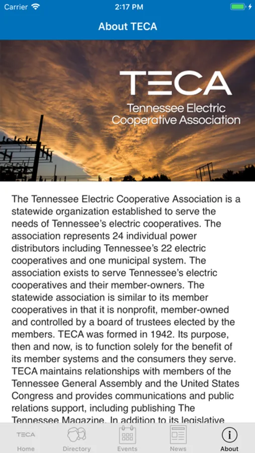The TECA app features a searchable database of co-op employees and directors as well as a full schedule of conferences and events. The TECA app keeps you informed and connected with the electric cooperatives of Tennessee.