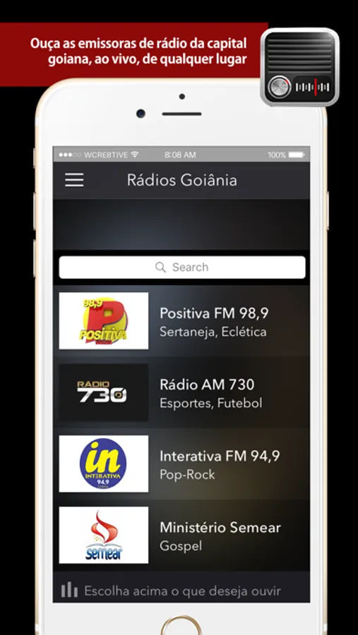 EMISSORAS DE RÁDIO! Convidamos você a anunciar sua rádio aqui no aplicativo "Rádios de Goiânia Ao Vivo". É GRÁTIS! Escreva para nós radiosgoiania@wcre8tive.com