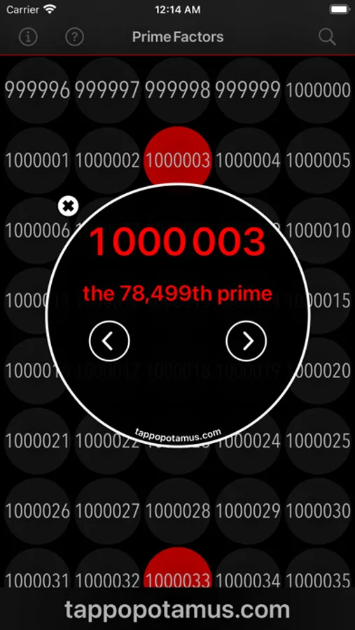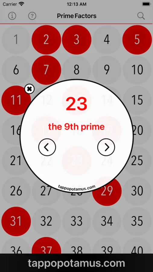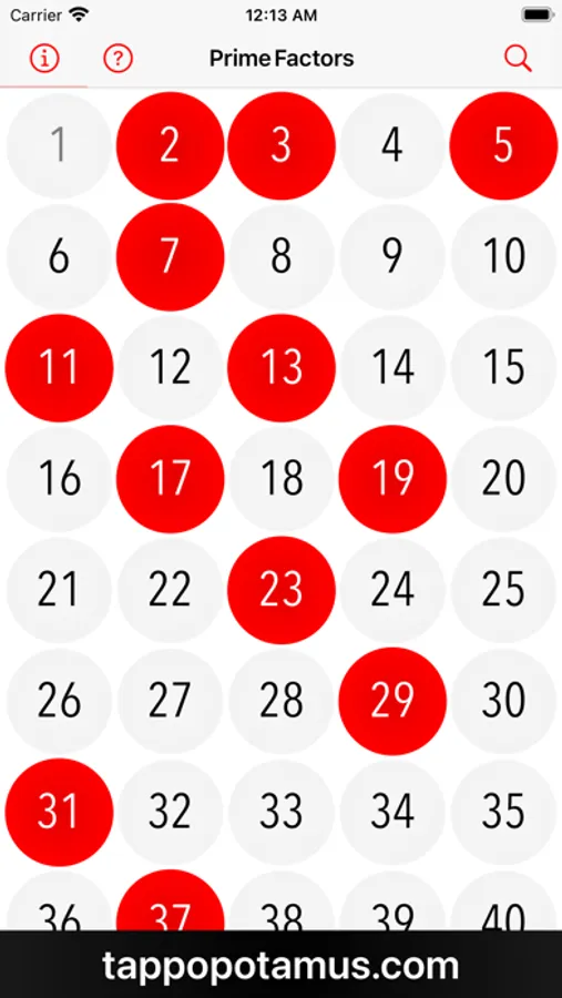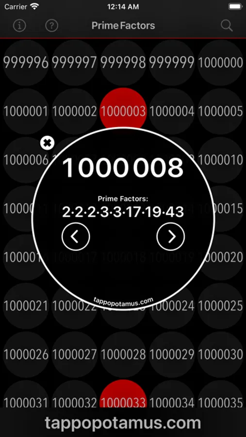 • Prime Factors can be viewed by tapping on a number