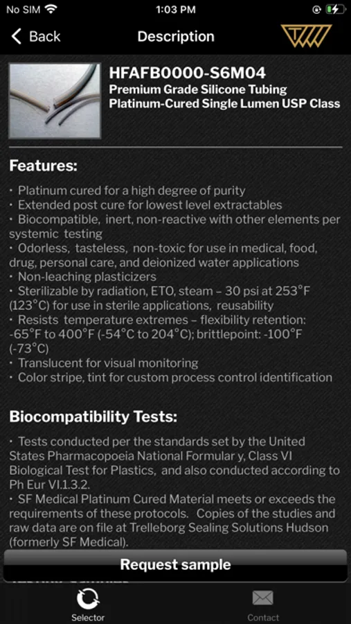 The Trelleborg Sealing Solutions Tubing and Hose Selector app simplifies choosing the correct tubing and hose based on input parameters such as material and pressure, giving the information instantly and removing the need to search through catalogues. The app also allows you to directly request samples or contact Trelleborg Sealing Solutions from the interface.