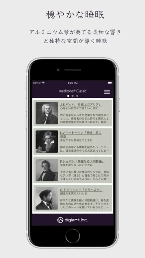 This app is an app that is derived from all the music therapy apps developed by digiart, Inc., and is specific to classical music.