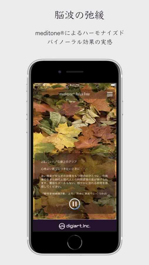 in "SLEEP by meditone" as well, the app achieves a relaxing effect that is equivalent to or greater than listening to classical music on a top class player.